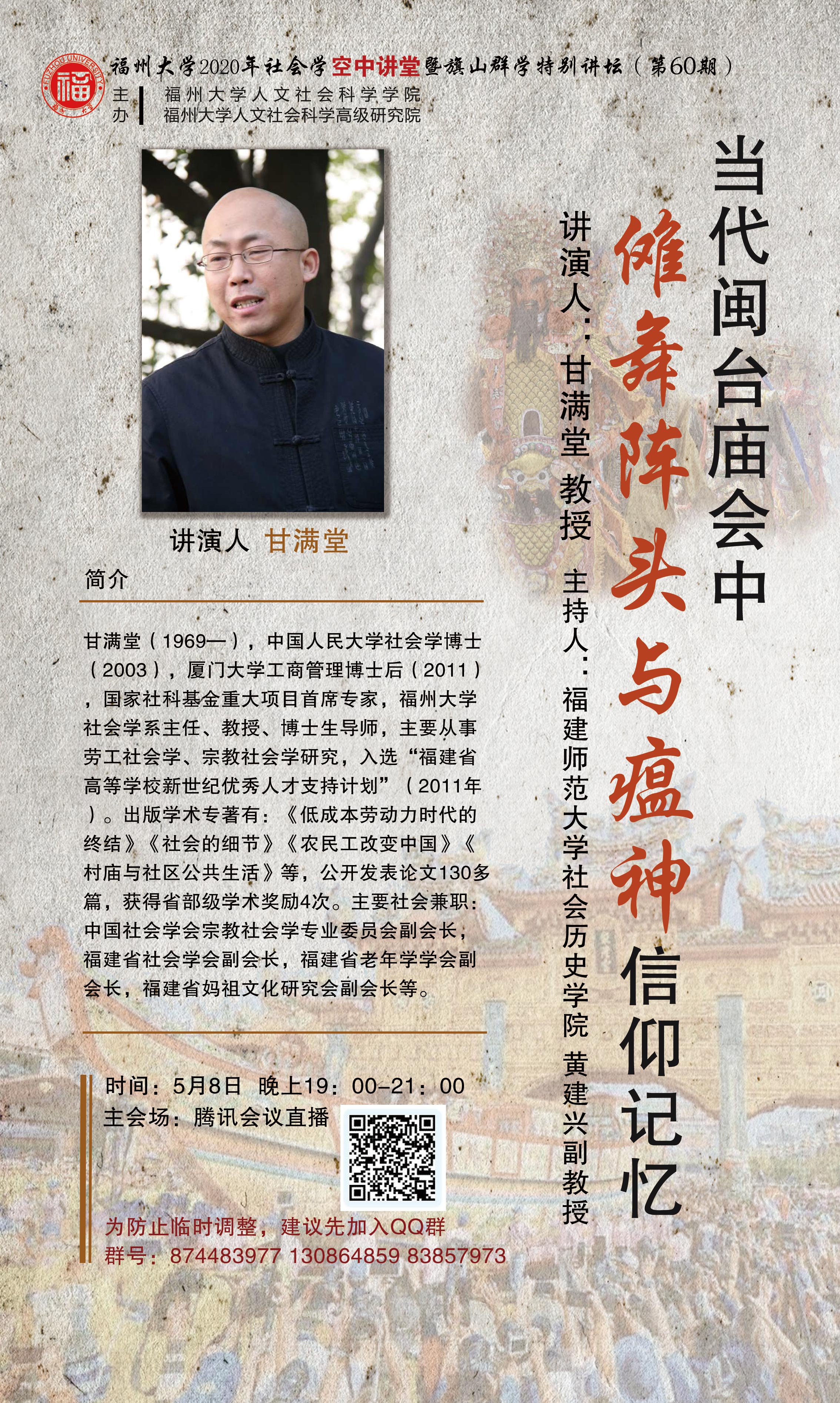 演讲人简介:甘满堂(1969—),中国人民大学社会学博士(2003),厦门大学工商管理博士后(2011),国家社科基金重大项目首席专家,js6668金沙登录入口社会学系主任、教授、博士生导师,主要从事劳工社会学、宗教社会学研究,入选“福建省高等学校新世纪优秀人才支持计划”(2011年)。出版学术专著有:《低成本劳动力时代的终结》《社会的细节》《农民工改变中国》《村庙与社区公共生活》等,公开发表论文130多篇,获得省部级学术奖励4次。